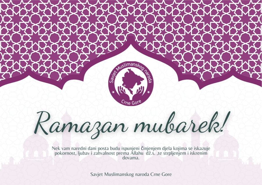 U svoje lično ime i u ime Savjeta Muslimanskog naroda Crne Gore želim da vam naredni dani posta budu ispunjeni činjenjem djela kojima se iskazuje pokornost, ljubav i zahvalnost prema Allahu dž. s.,te strpljenjem i iskrenim dovama.